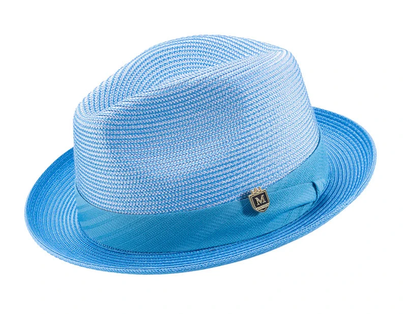 Aqua 2″ Brim Pinch Braided Fedora With Matching Ribbon