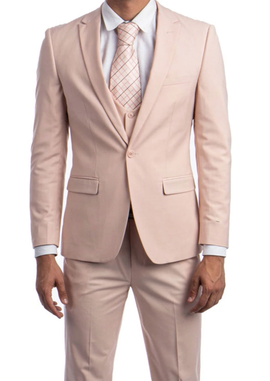 The Slim Fit suit/tuxedo has a narrow cut without much excess fabric, leading to a tighter fit than Regular Fit. If you normally wear Regular Fit, we suggest you choose one size (2 inches) larger than your measured chest size. For example, if the chest size is 44″, you’ll be ordering 46″ Chest – 40 Waist.