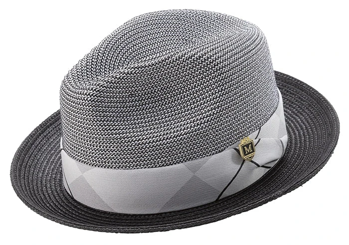 Braided Two Tone Stingy Brim Pinch Fedora Hat In Black