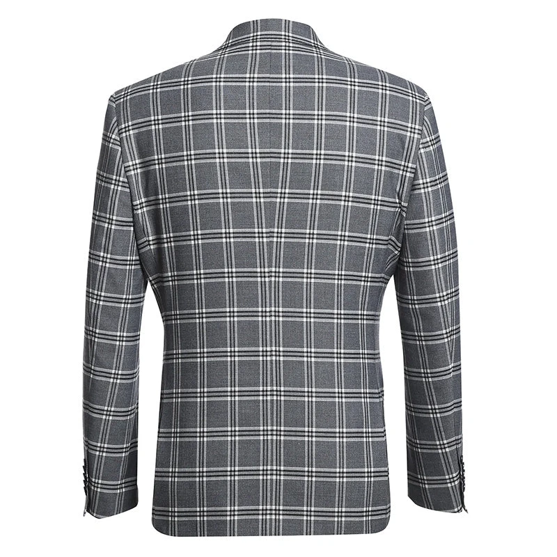 This stunning gray-white checked suit is a must-have for your outerwear collection. Featuring a two-button fastening, peak lapel, and top stitching details, this on-trend style is sure to make a statement.