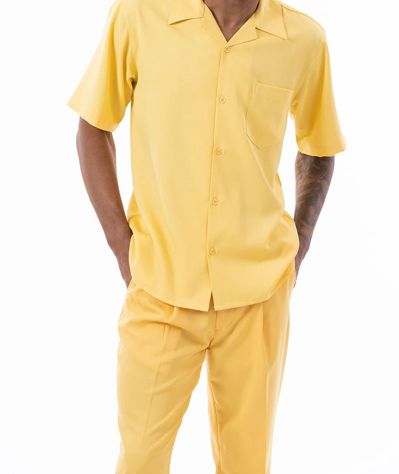 Men’s 2 Piece Walking Suit Summer Short Sleeves In Canary Yellow