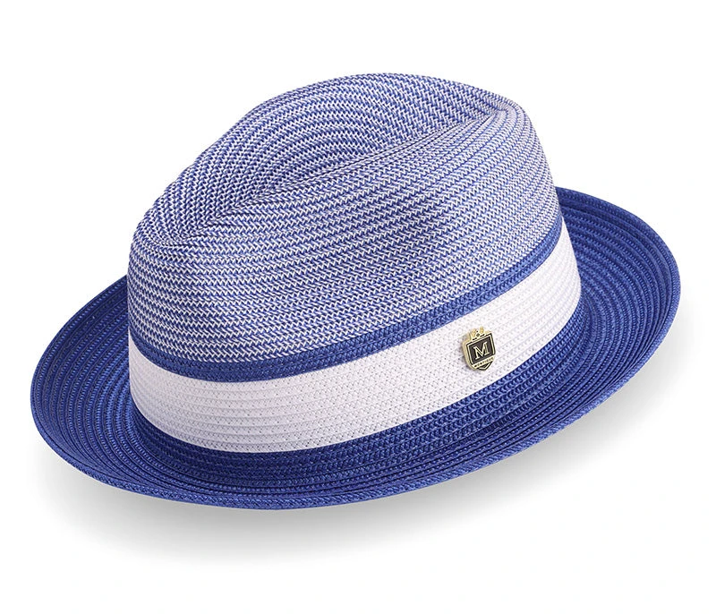 Men’s Braided Two Tone Pinch Fedora Hat In Royal Blue