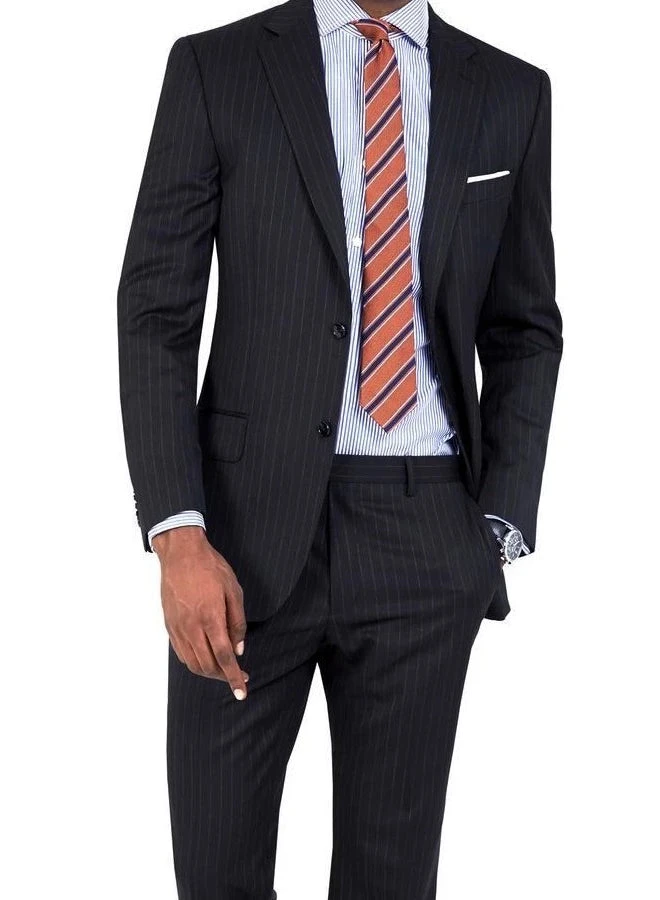 - Wool Suit Pinstripe Black