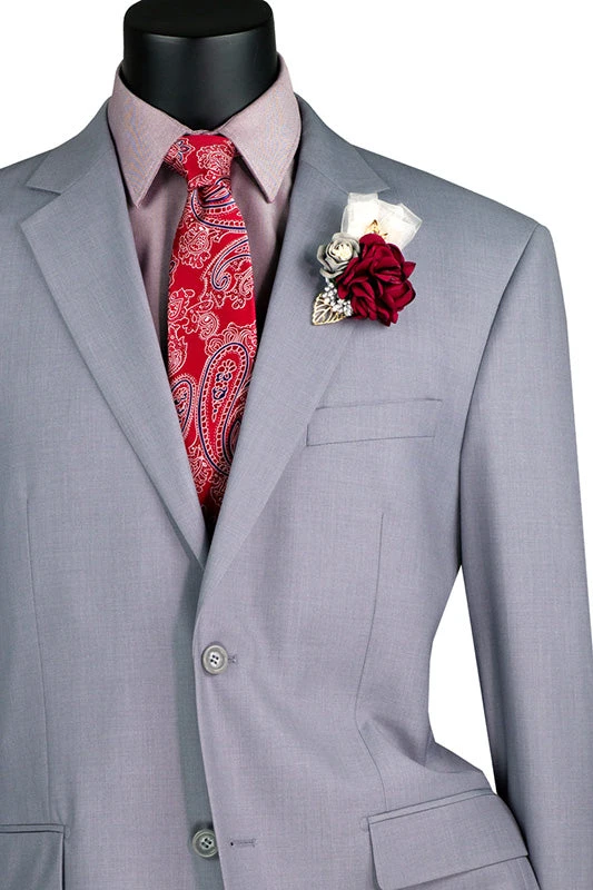 Nola Collection – Light Gray Regular Fit 2 Piece Suit Flat Front Pants With 2″ Elastic Waist Band