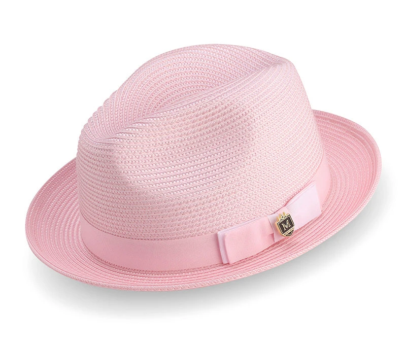 Pink Men’s Two Tone Braided Pinch Fedora With Grosgrain Ribbon