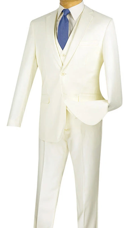 Slim Fit Business Men’s Suit 3 Piece 2 Button In Ivory