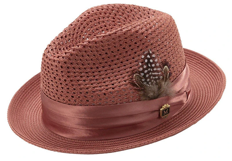 Spice Solid Color Pinch Braided Fedora With Matching Satin Ribbon