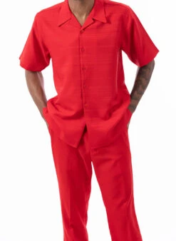 Royal Blue 2 Piece Short Sleeve Men’s Summer Walking Suit Minimalist Straight Lines Design